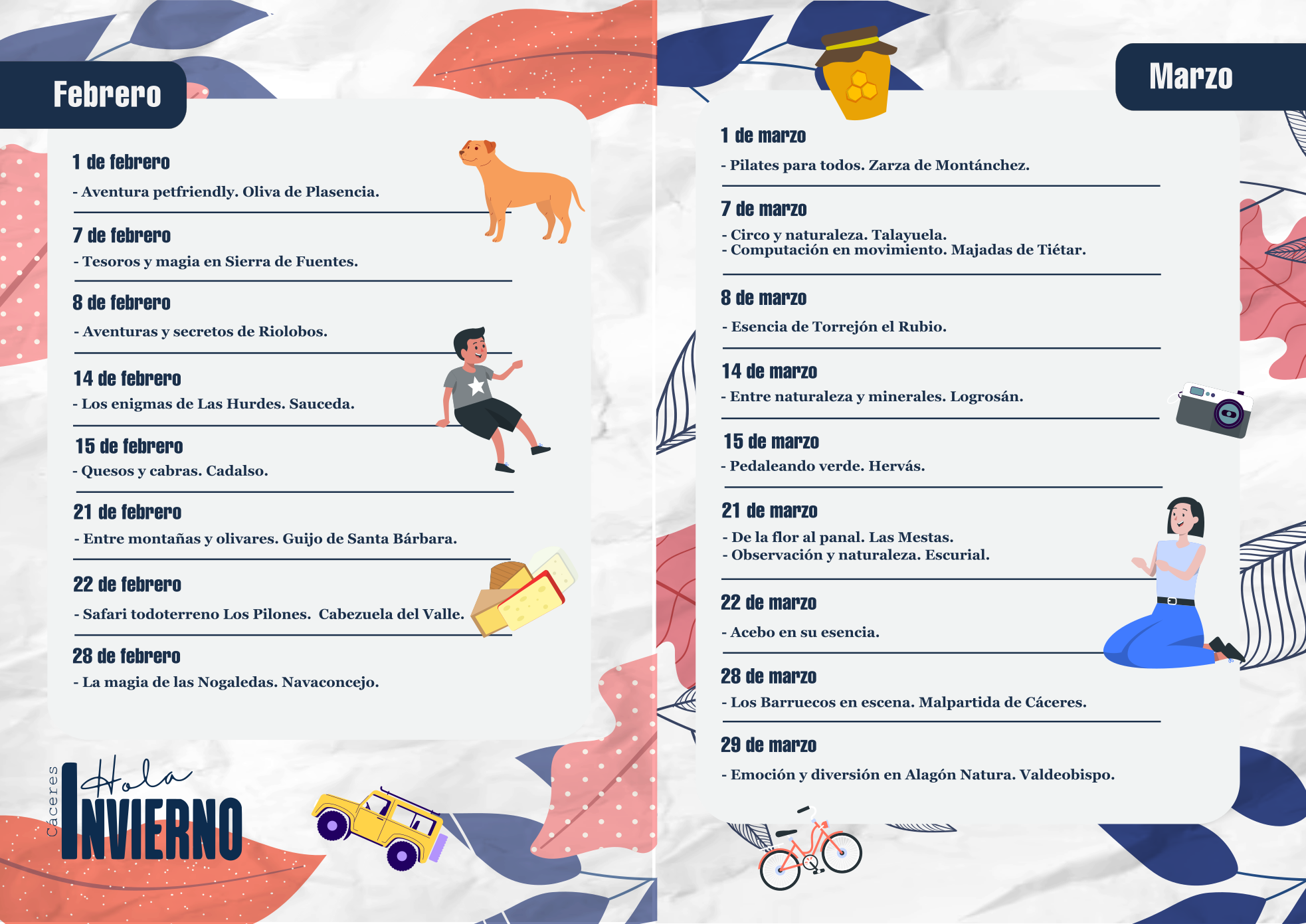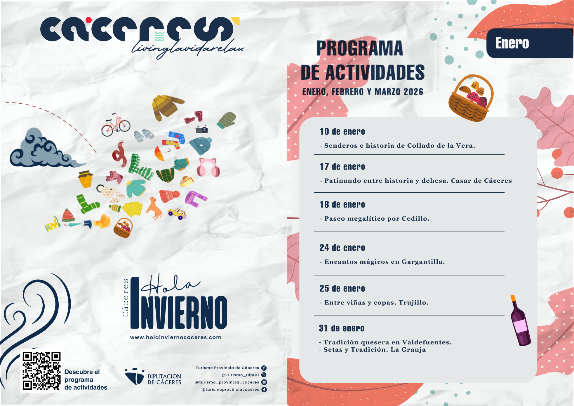 – Un total de 26 actividades repartidas por 14 territorios de la provincia de Cáceres entre los que destacan Parque Cultural Sierra de Gata, Valle del Alagón, Trasierra-Tierras de Granadilla, Valle del Ambroz, Valle del Jerte, La Vera, Campo Arañuelo, Miajadas-Trujillo, Las Hurdes, Tajo-Salor-Almonte, Sierra de Montánchez y Tamuja, Reserva de la Biosfera de Tajo Internacional, Reserva de la Biosfera de Monfragüe y Geoparque Mundial UNESCO Villuercas-Ibores-Jara.
